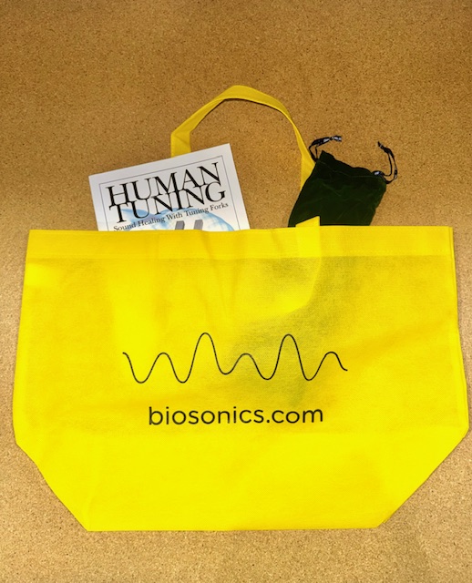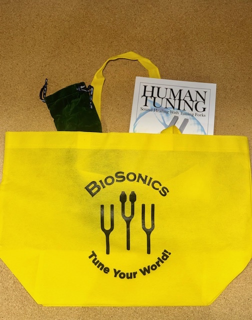 Biosonics (Tune your world) double side printed carrying bag in large, is perfect for traveling and carrying your tuning forks, books and much more.